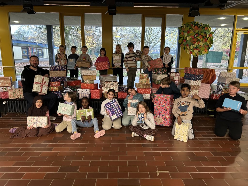 Die Grundschule Haste hat sich auch in diesem Jahr als Teil einer bundesweiten Hilfsaktion engagiert: Im Rahmen des Weihnachtspäckchenkonvois wurden insgesamt 116 Geschenkpakete von Lehrkräften, Schülerinnen und Schülern sowie Eltern zusammengestellt und heute an Dennis, den Präsidenten des Osnabrücker Round Table, übergeben.​ Der Weihnachtspäckchenkonvoi ist eine Aktion des Round Table Deutschland und verfolgt das Ziel, bedürftigen Kindern in entlegenen Regionen Osteuropas zu Weihnachten eine Freude zu bereiten. Die gesammelten Päckchen enthalten Spielsachen, Schulmaterialien, Kleidung und Hygieneartikel und werden direkt in Waisenhäuser, Kindergärten und Schulen vor Ort gebracht.​ Besonders engagiert zeigte sich die Klasse 2c, die bei der Übergabe tatkräftig geholfen, die Pakete verladen und gezählt hat. Ein herzliches Dankeschön geht an alle Beteiligten! Durch dieses gemeinsame Engagement der Schulgemeinschaft wird ein wichtiger Beitrag dazu geleistet, Kindern in schwierigen Lebenslagen ein Stück Freude zu schenken und zu zeigen, wie bedeutsam Solidarität und Mitmenschlichkeit sind.