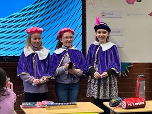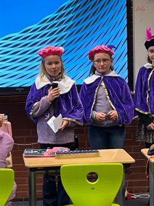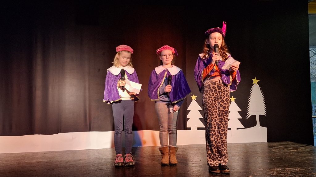 In den Niederlanden kommt der Sinterklaas und dann – nämlich am 5.12. gibt es auch schon die Geschenke für die Kinder. Einige Schüler unserer Schule kennen diesen Brauch besonders gut, denn sie haben familiäre Verbindungen zu den Niederlanden. Mit viel Freude haben daher einige Viertklässlerinnen aus der Klasse 4b einen kleinen Vortrag mit entsprechendem Gesang vorbereitet. Passend dazu hatten sie sich als Pieten verkleidet und überraschten ihre Mitschüler mit kleinen süßem Gebäck. Zum ersten Adventsimpuls werden die drei Schülerinnen erneut auf der Bühne stehen und der Schulgemeinschaft vom Sinterklaas erzählen und vorsingen. Vielen Dank für eure schöne Einstimmung auf die Adventszeit und den Einblick in die Niederländische Weihnachtskultur. Einfach zauberhaft!