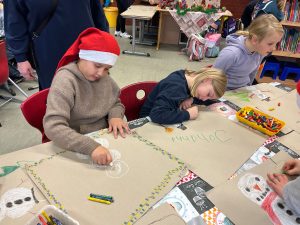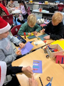 Am Mittwoch war es wieder soweit. Auf dem Flur vor den Klassen 2 roch es verdächtig nach frisch gebackenen Waffeln. Und richtig… Wie in jedem Jahr kurz vor Weihnachten fand der traditionelle Weihnachtsvormittag des Jahrgangs statt. Fleißige Eltern backten jede Menge Waffeln in den Klassen und die Kinder konnte zwischen mehreren Bastelangeboten wählen. Bei weihnachtlicher Musik und Kaminfeuer auf der Tafel wurde geprickelt, geklebt, gemalt, geschnitten und geschlemmt. Am Ende waren sich alle einig: Das war ein sehr schöner Vormittag!