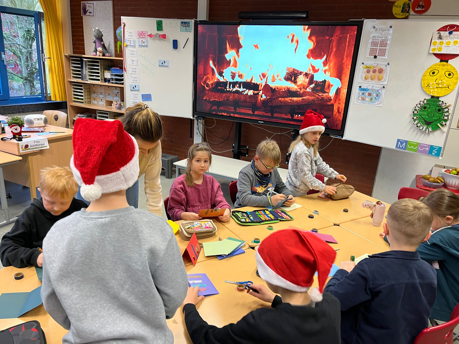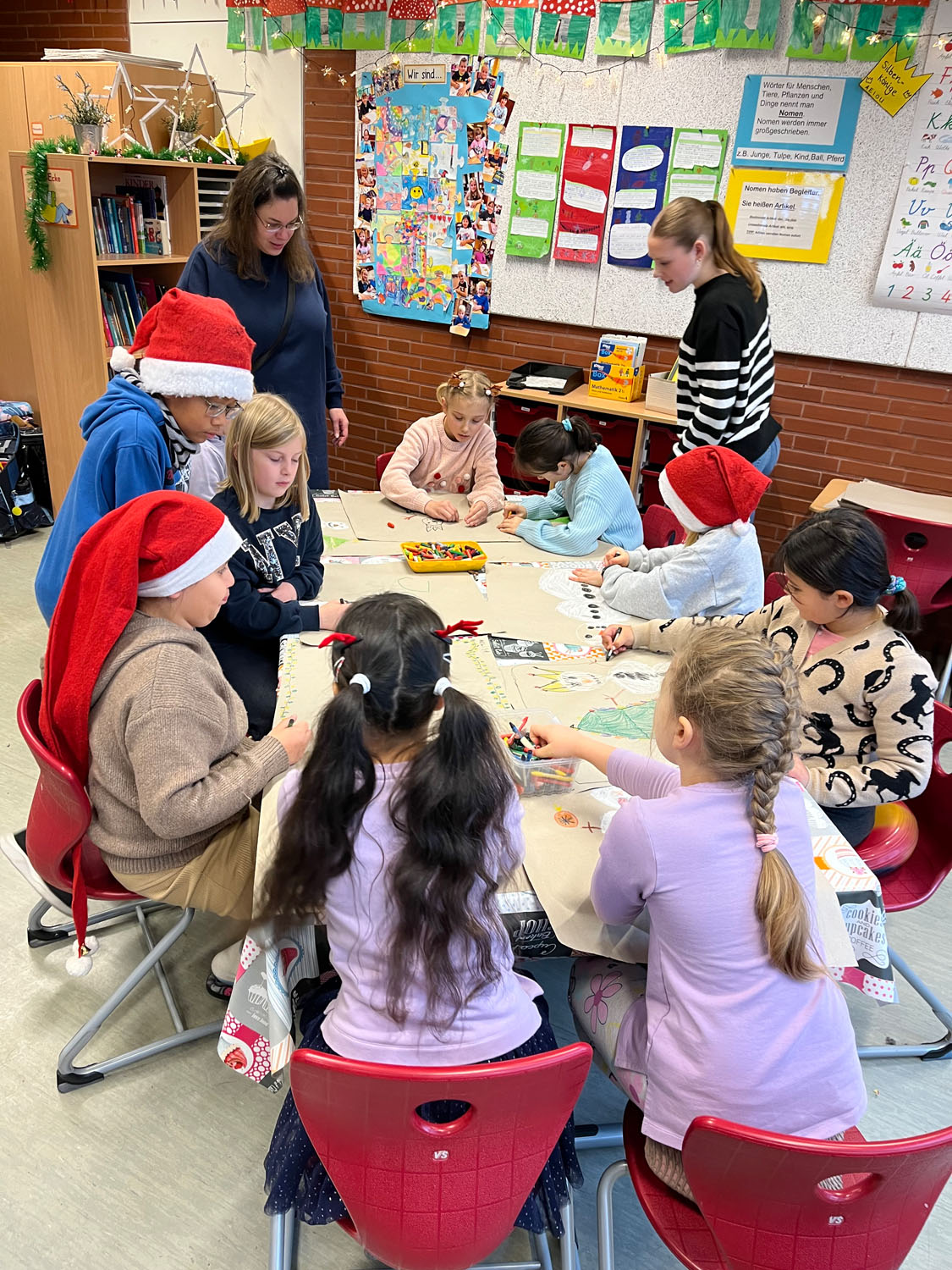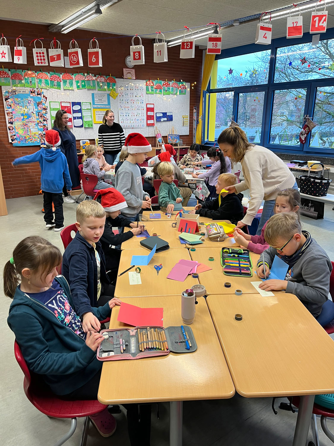 Am Mittwoch war es wieder soweit. Auf dem Flur vor den Klassen 2 roch es verdächtig nach frisch gebackenen Waffeln. Und richtig… Wie in jedem Jahr kurz vor Weihnachten fand der traditionelle Weihnachtsvormittag des Jahrgangs statt. Fleißige Eltern backten jede Menge Waffeln in den Klassen und die Kinder konnte zwischen mehreren Bastelangeboten wählen. Bei weihnachtlicher Musik und Kaminfeuer auf der Tafel wurde geprickelt, geklebt, gemalt, geschnitten und geschlemmt. Am Ende waren sich alle einig: Das war ein sehr schöner Vormittag!