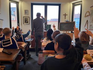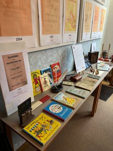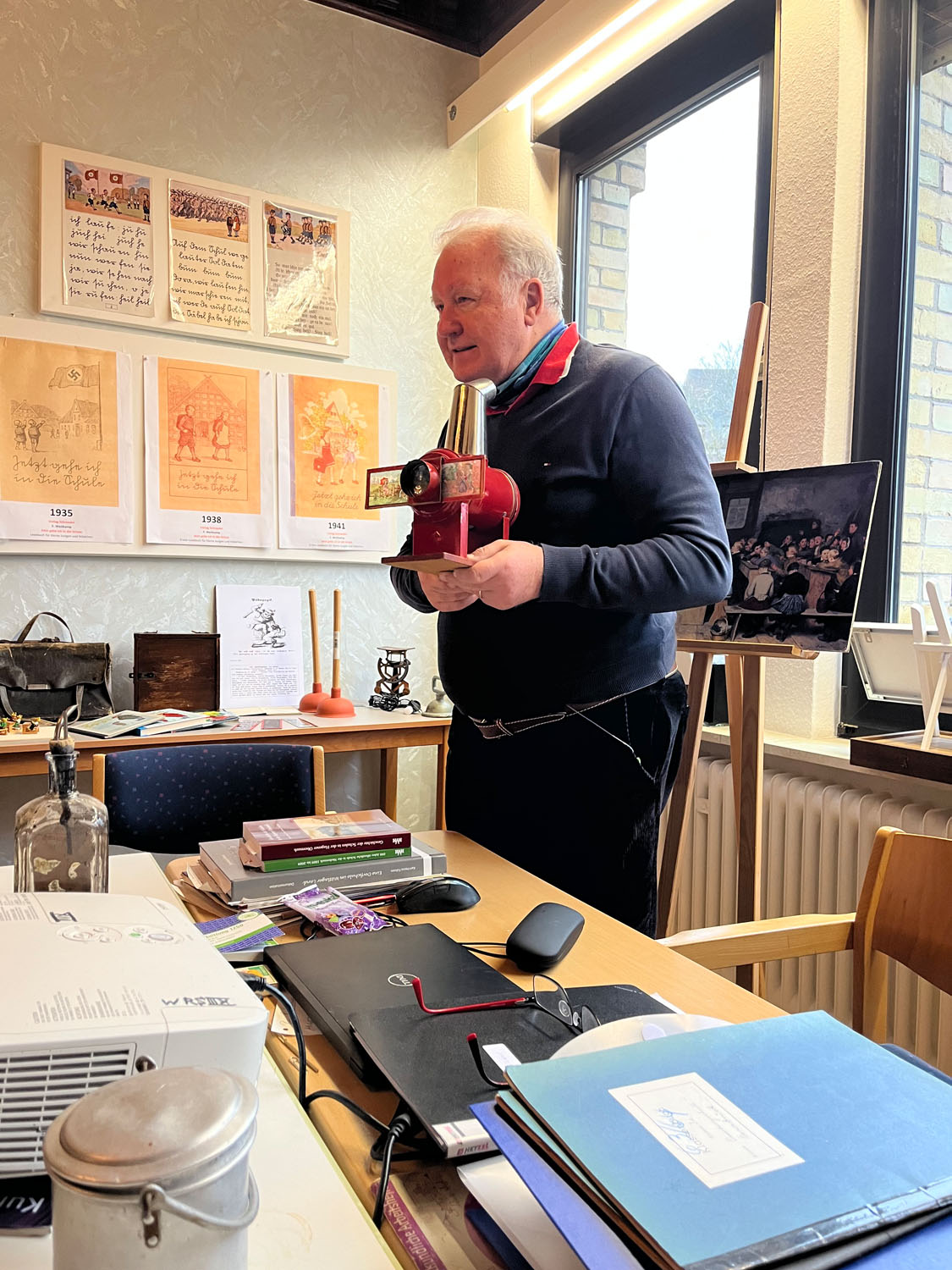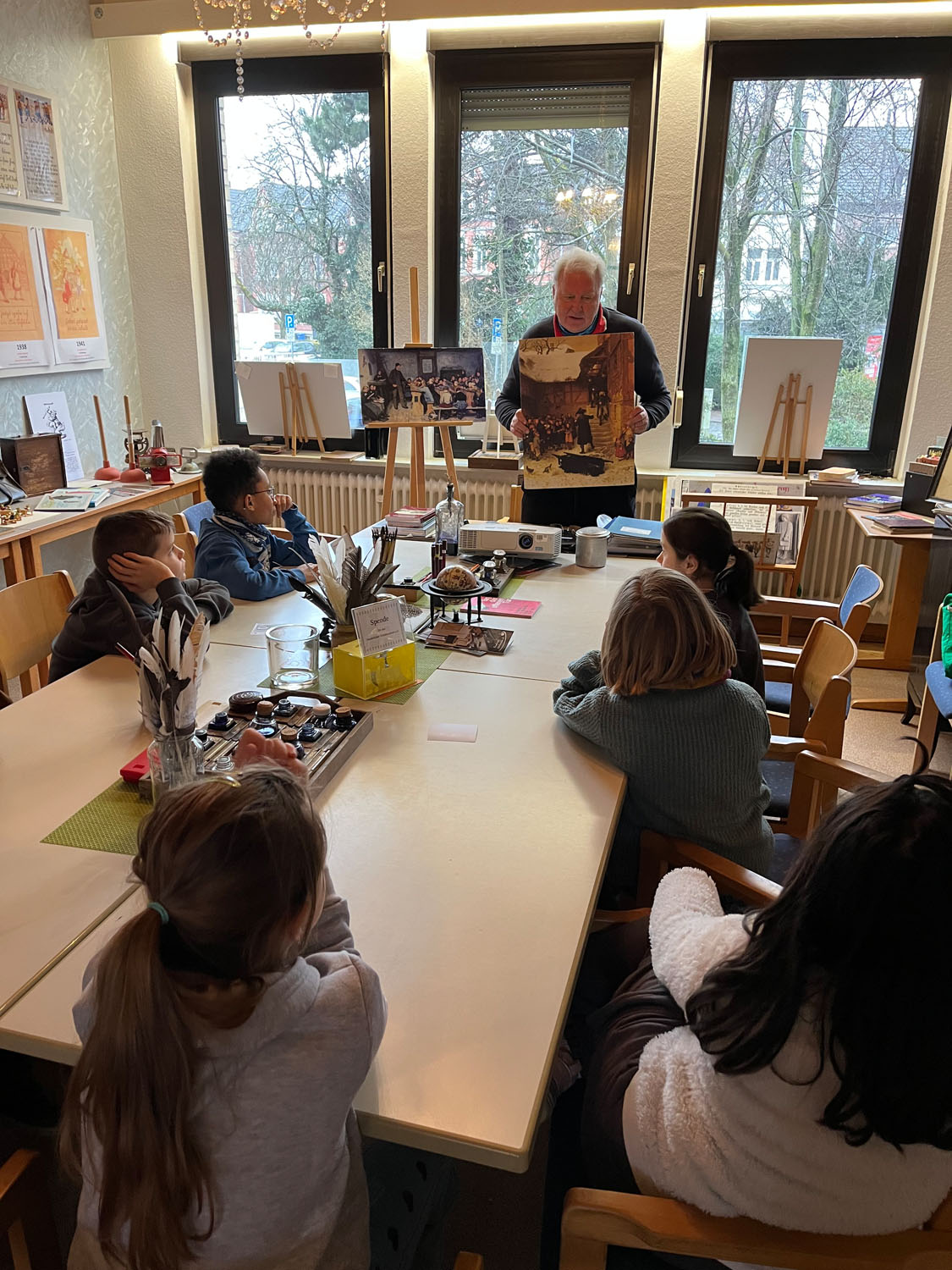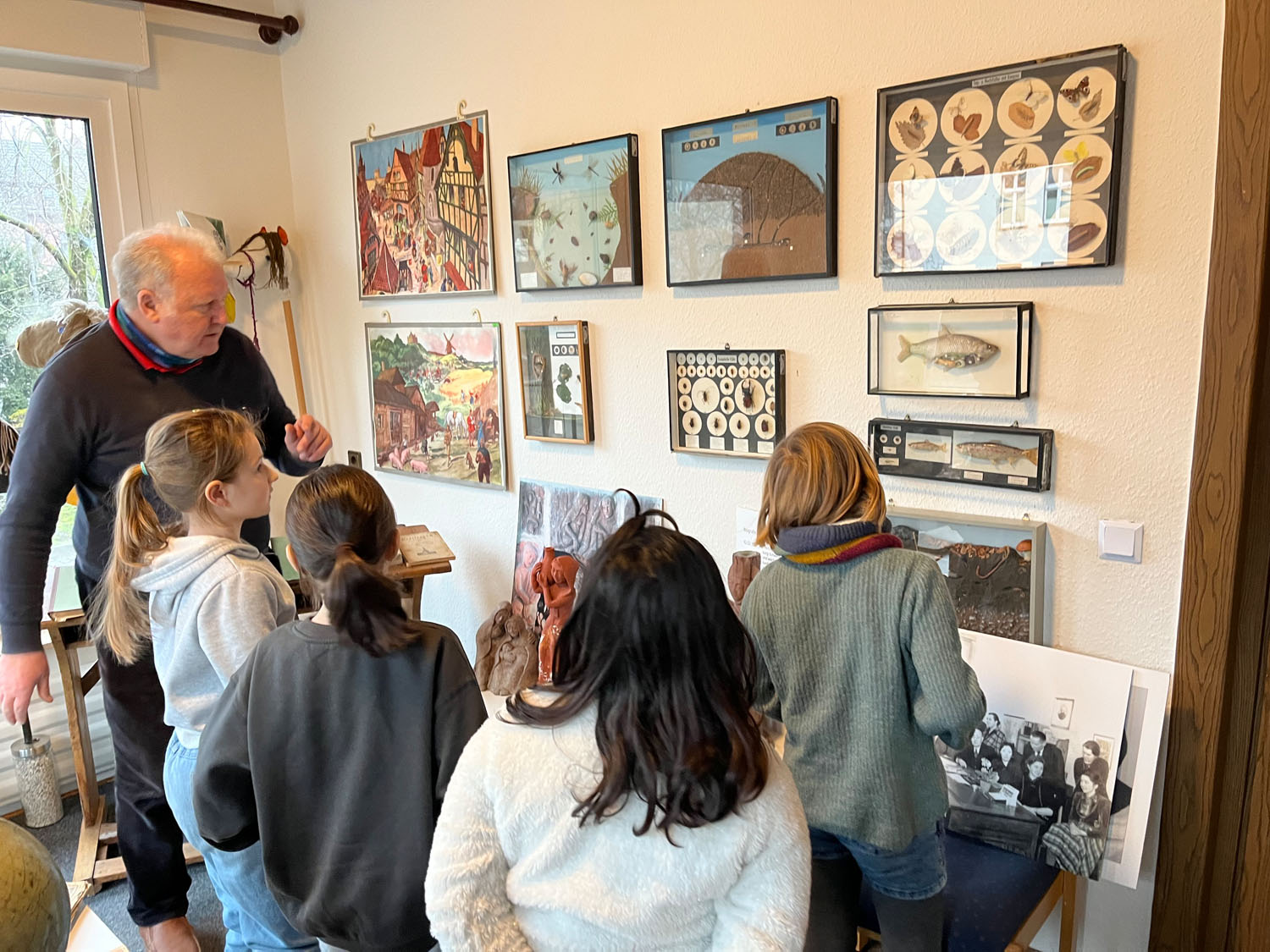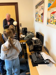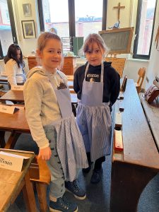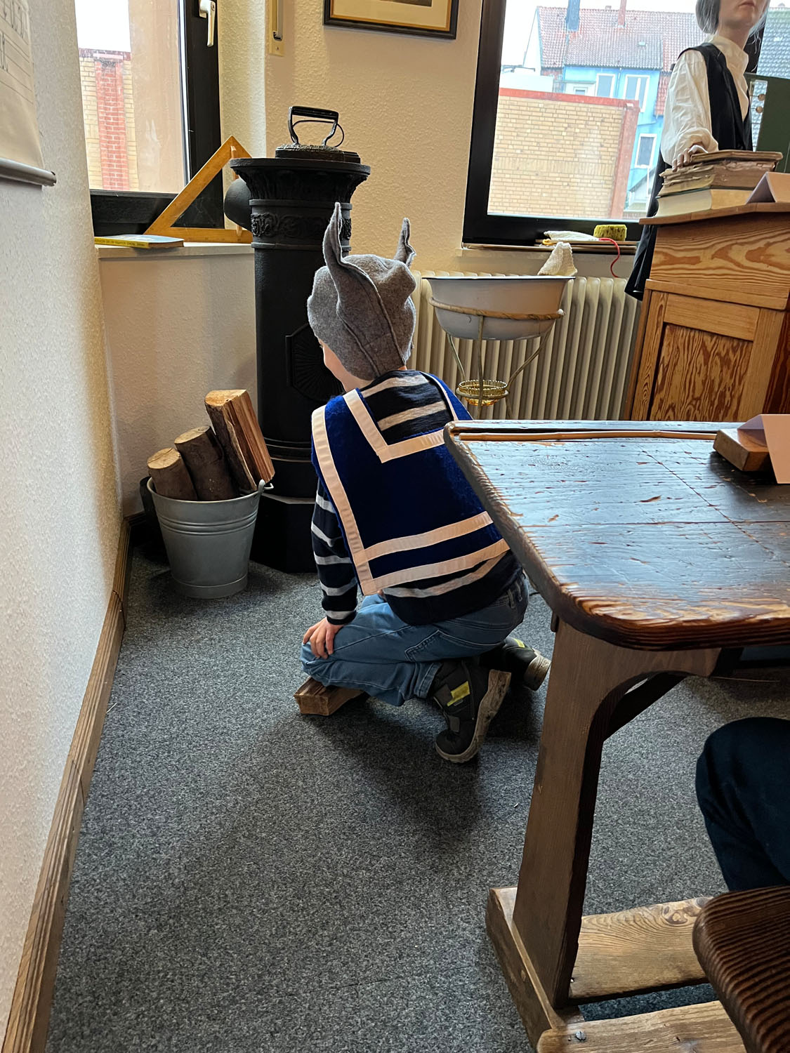 Im Rahmen des Themas „Zeit“ im Sachunterricht besuchte in der letzten Woche unser zweiter Jahrgang das Osnabrücker Schulmuseum. Neben zahlreichen Ausstellungsstücken, wie alte Schulranzen, Bücher, Karten, Atlanten,… durften die Kinder einmal hautnah erleben, wie vor circa 100 Jahren ein normaler Schultag für die Kinder ausgesehen hat: still sitzen, Hände nebeneinander auf dem Tisch, zur Antwort immer neben den Platz stellen und mit Herr Lehrer antworten, schreiben auf Schiefertafeln,… Herr Normann und Herr Bruns vom Museum konnten den Kindern viel über den Schulalltag zur damaligen Zeit erzählen und alle waren sich am Ende einig: Wie gut, dass wir jetzt zur Schule gehen und nicht vor 100 Jahren