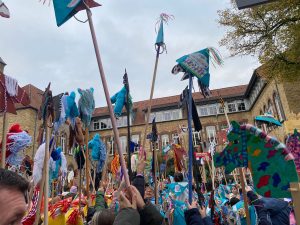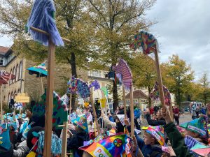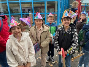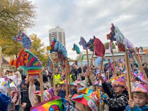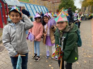 Seit Beginn des neuen Schuljahres haben sich die Viertklässler intensiv im der Stadtgeschichte von Osnabrück auseinandergesetzt. Dazu gehörte neben vielen Unterrichtsgängen im Sachunterricht auch die Vorbereitung des traditionellen Steckenpferdreitens. Dazu haben die Kinder im Kunstunterricht wie im jeden Jahr farbenfrohe Steckenpferde und die dazu passenden Hüte gestaltet. Auch im Musikunterricht wurde fleißig das Steckenpferdlied geprobt.
