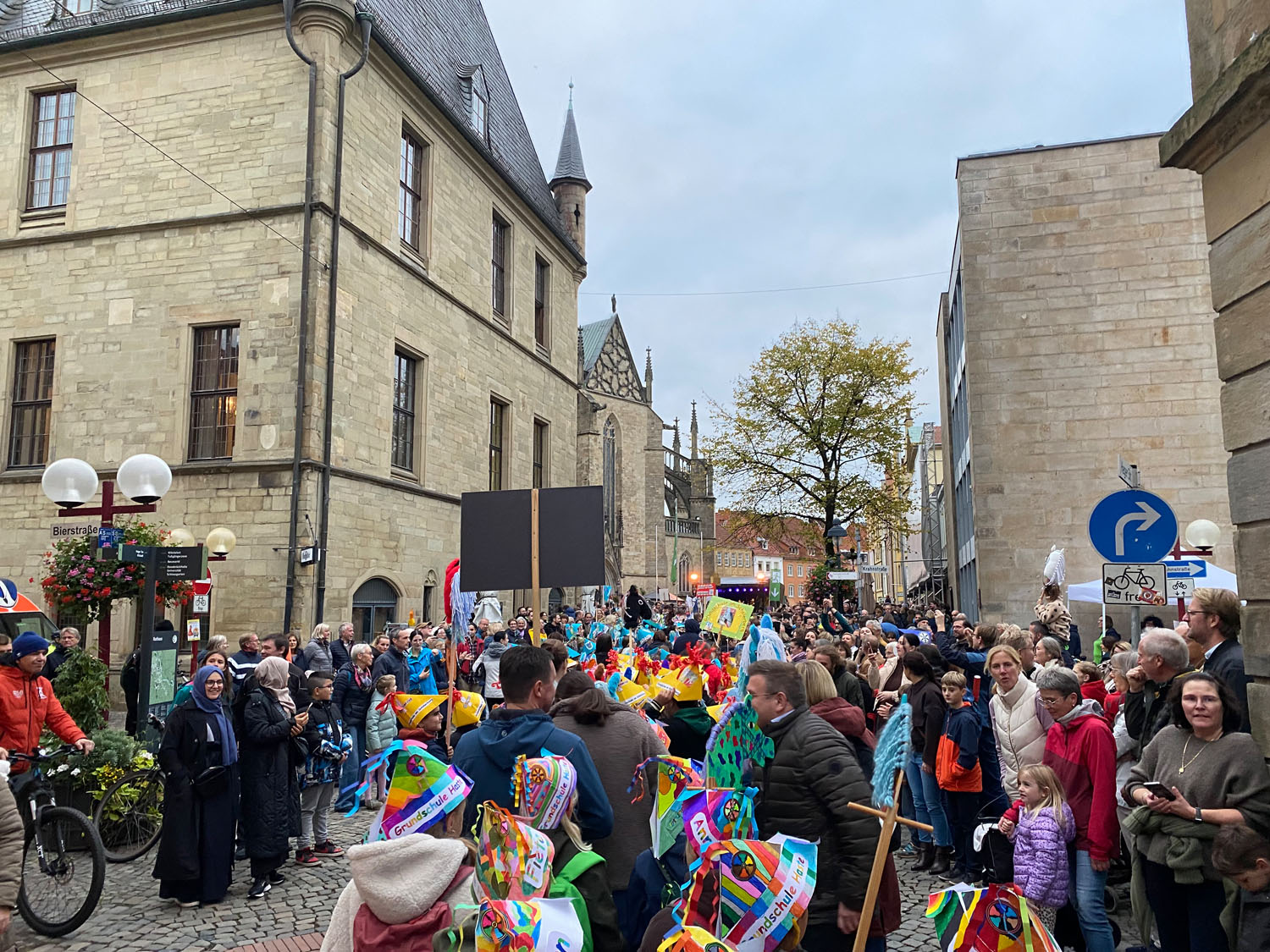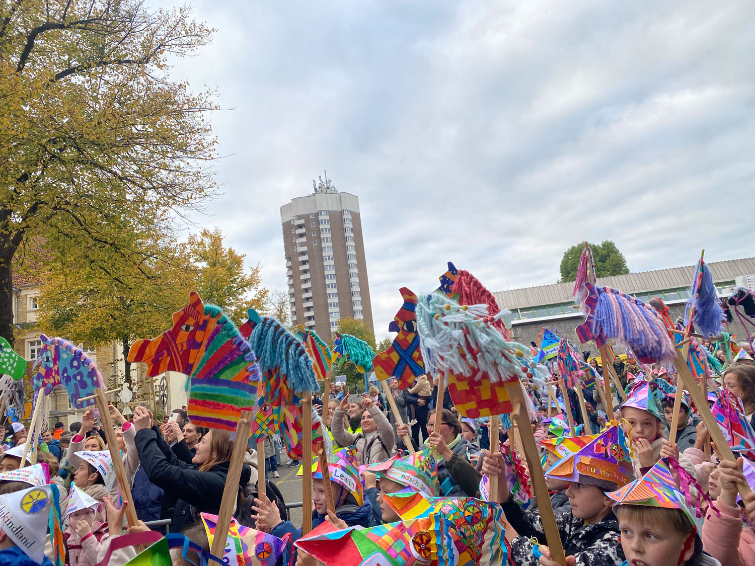 Seit Beginn des neuen Schuljahres haben sich die Viertklässler intensiv im der Stadtgeschichte von Osnabrück auseinandergesetzt. Dazu gehörte neben vielen Unterrichtsgängen im Sachunterricht auch die Vorbereitung des traditionellen Steckenpferdreitens. Dazu haben die Kinder im Kunstunterricht wie im jeden Jahr farbenfrohe Steckenpferde und die dazu passenden Hüte gestaltet. Auch im Musikunterricht wurde fleißig das Steckenpferdlied geprobt.
